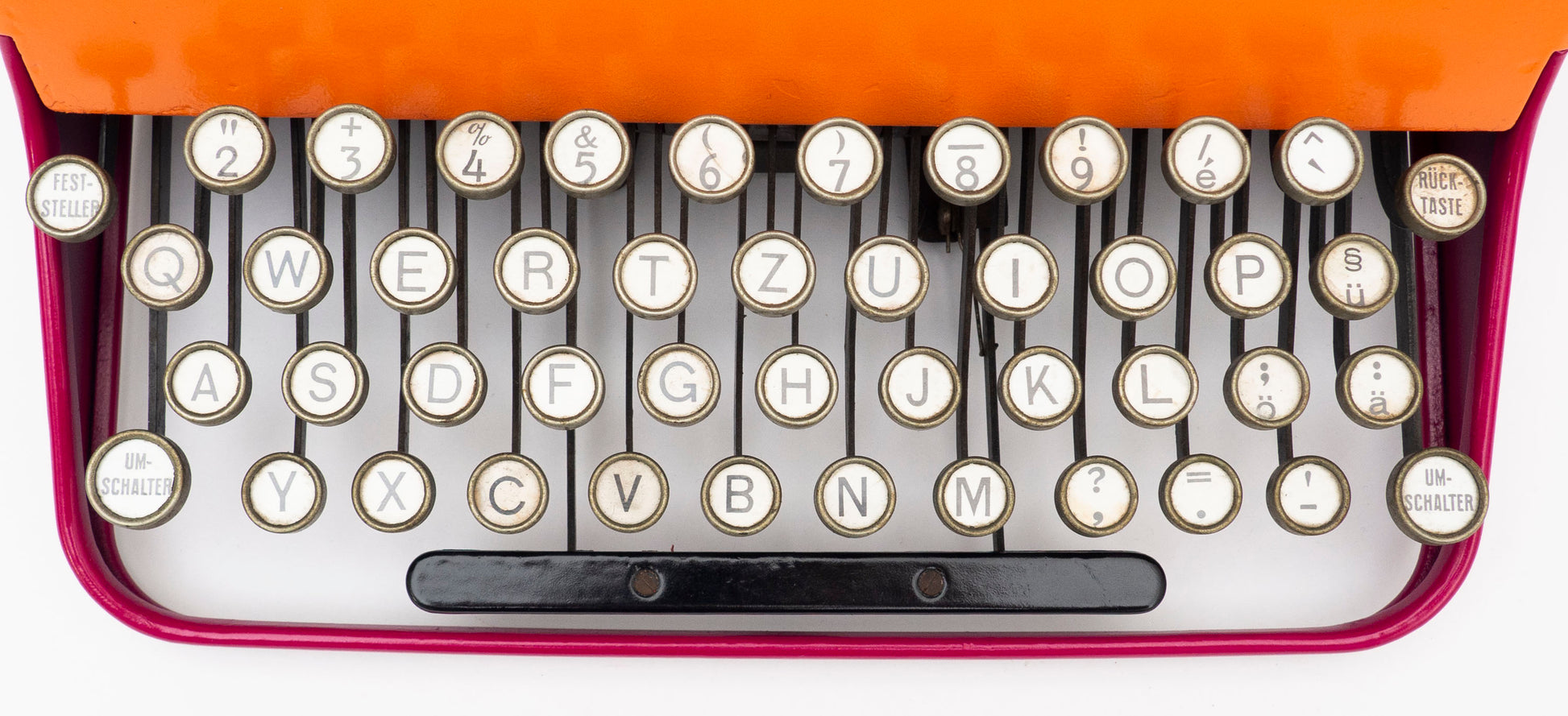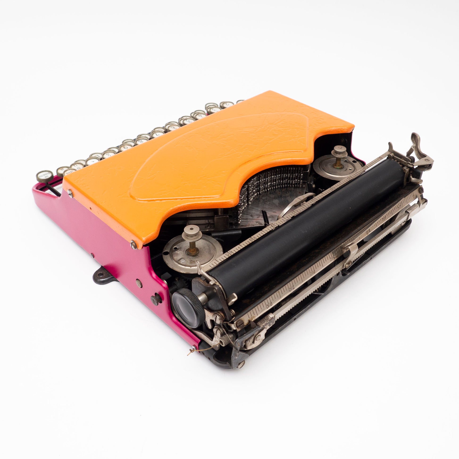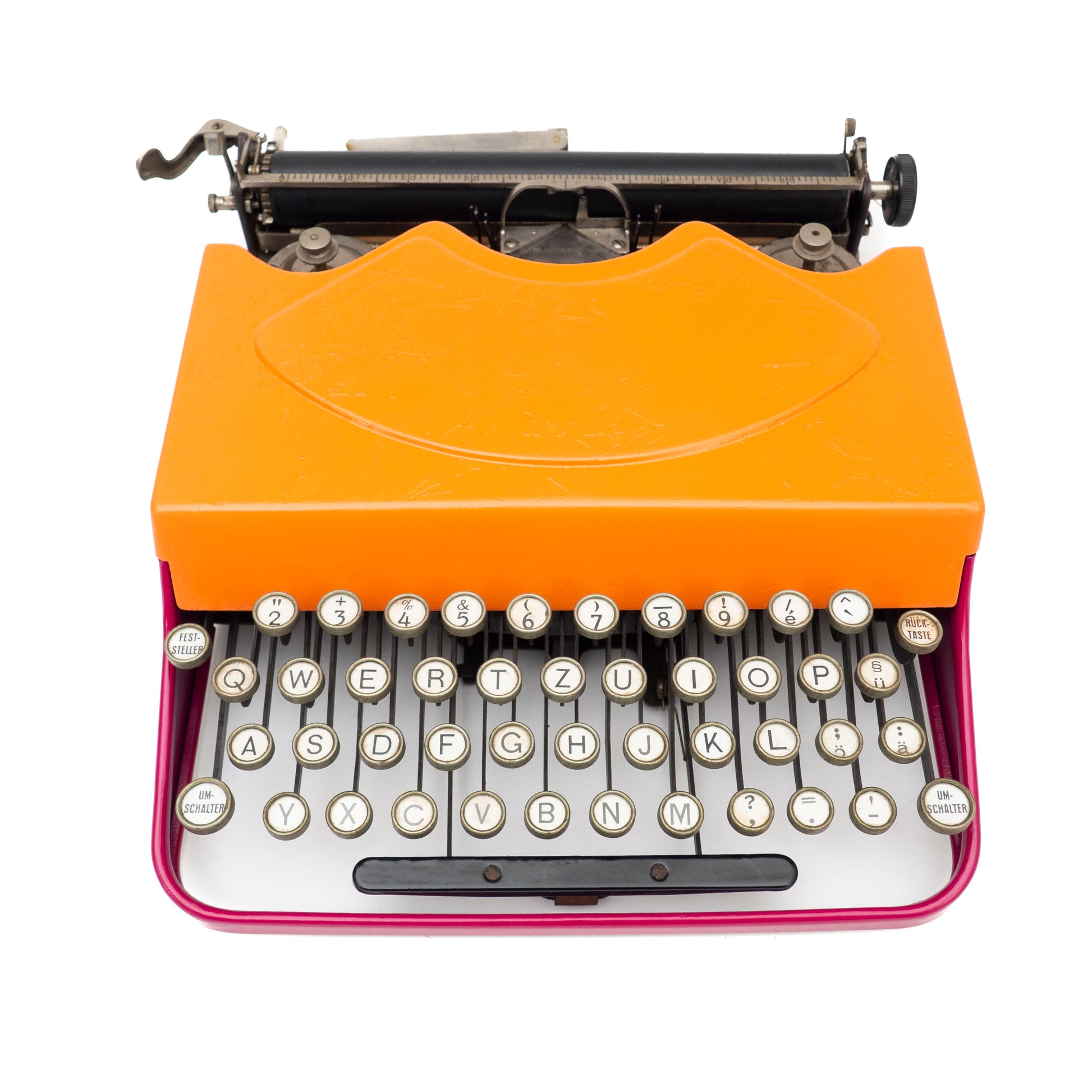 Schreibmaschine Klein Adler 2. Die Schreibmaschine hat einen neuen Lack in Rot und Orange, ist komplett gereinigt, restauriert und voll funktionsfähig.